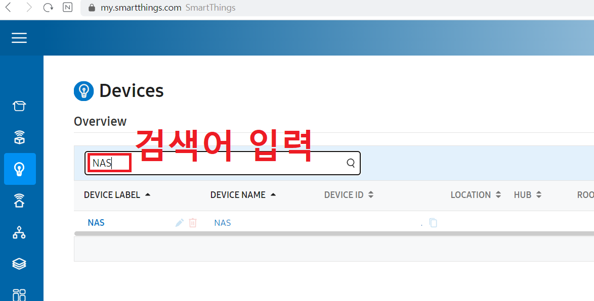 2-1. https://my.smartthings.com/advanced/hubs 에 접속해서 허브의 장치 세부 페이지로 접속한다.