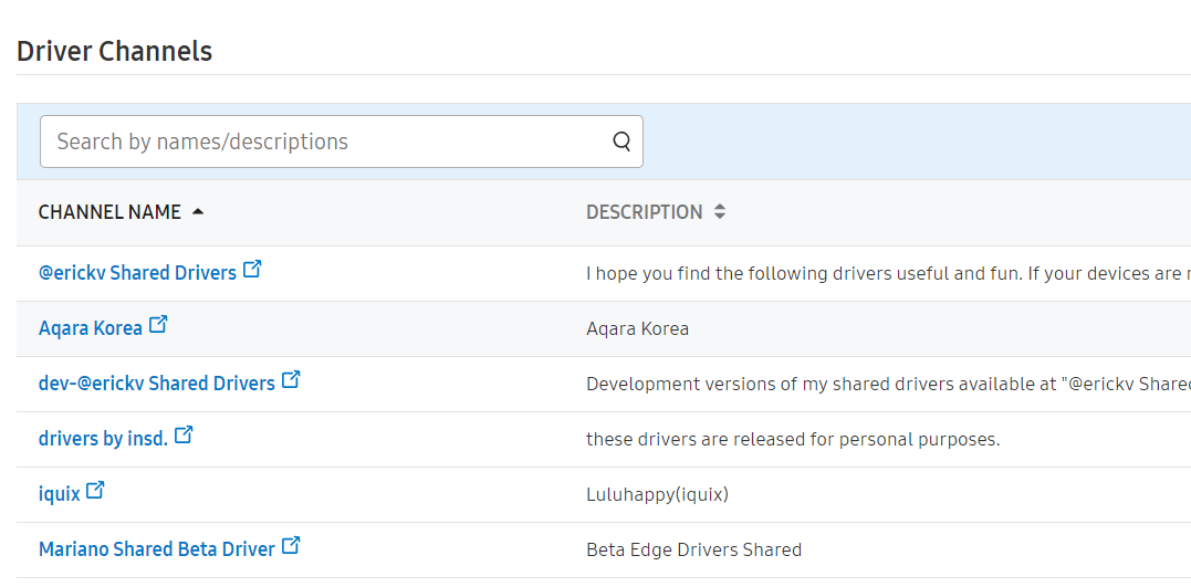 zigbee 장비의 엣지드라이버만 검색가능하도록 목록화하였습니다.