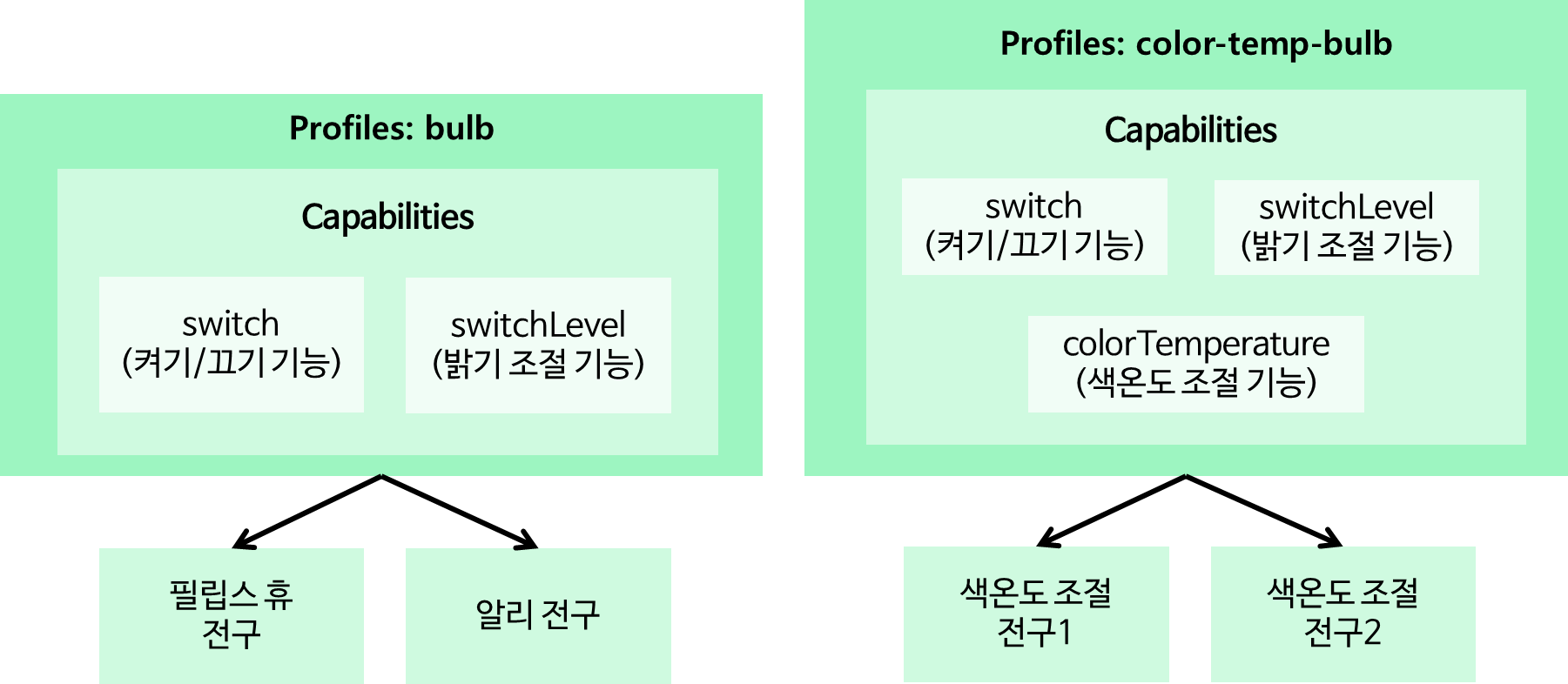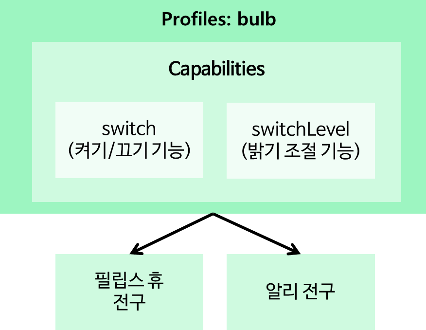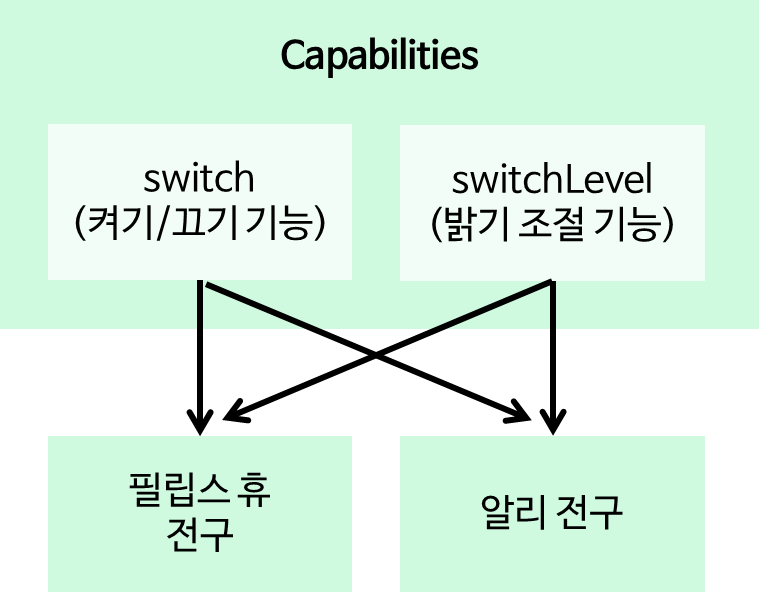 이런 여러 장치들이 공통적으로 필요한 기능들을 묶어서 "전구", "스위치", "커튼" 과 같이 이해하기 쉽게 이름을 짓고 저장해두었습니다.